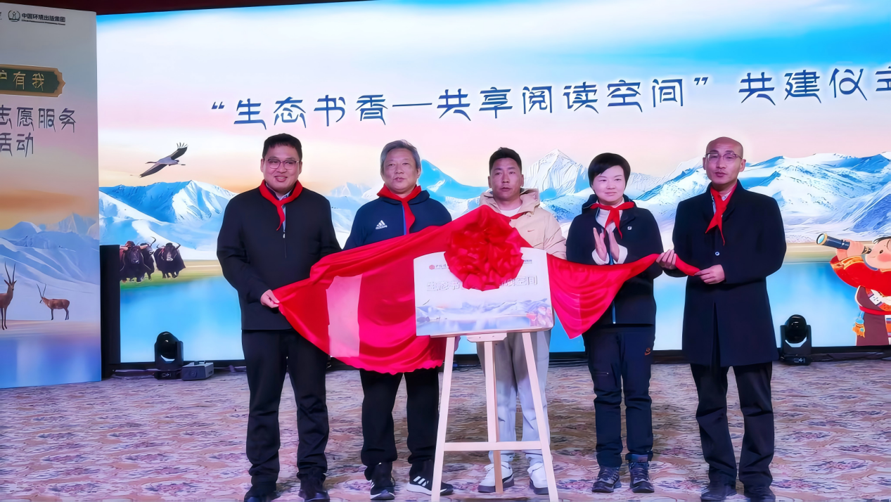 此次活動上,申扎“生態(tài)書香-共享閱讀空間”落戶申扎縣第二小學(xué),中華環(huán)境保護(hù)基金會理事長徐光,中國環(huán)境出版集團(tuán)黨委委員、副總經(jīng)理陶克菲,中信集團(tuán)援藏干部,那曲市委副秘書長、申扎縣縣委常務(wù)副書記,政府常務(wù)副縣長洪永,申扎第二小學(xué)德育副校長洛桑羅布,申扎縣人民政府副縣長張延飛等共同為申扎“生態(tài)書香-共享閱讀空間”揭牌,并為閱讀空間捐贈了一系列環(huán)??破請D書和科學(xué)實驗器材。